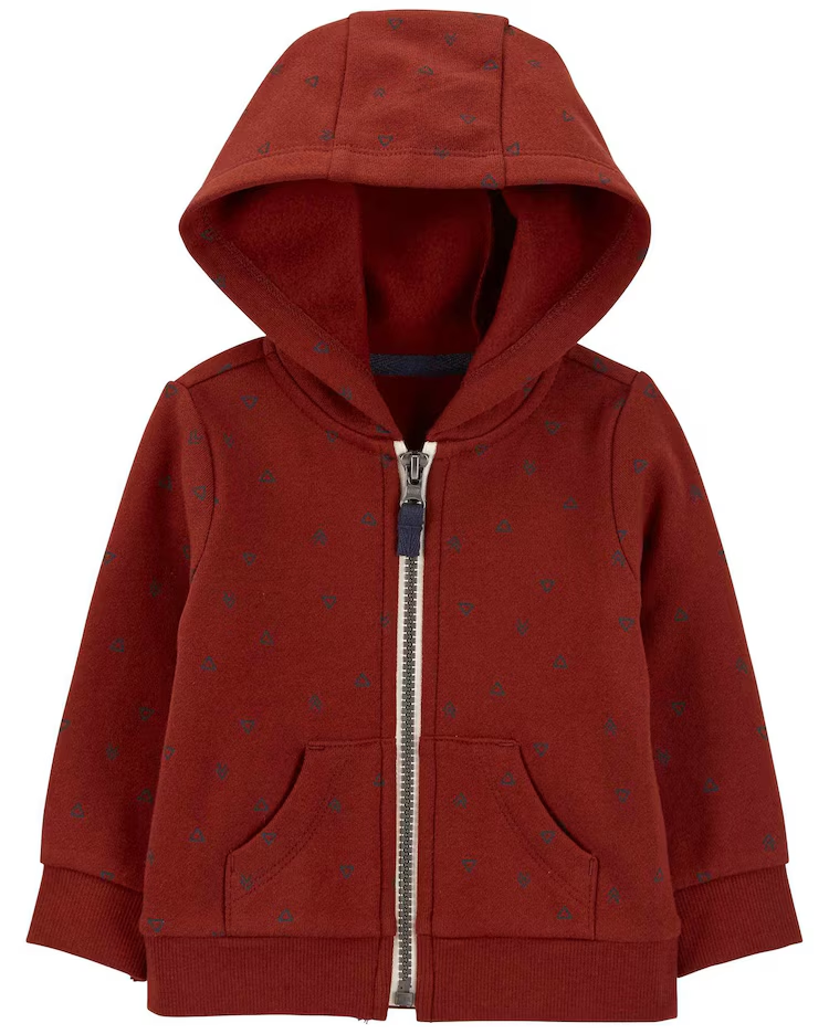 Perfeita para aquecer os pequenos, a Blusão de moletom bebê com capuz geométrico vermelho | Carter’s pode ser combinada com diversos looks e seu tecido traz o conforto e o aconchego necessários. A peça conta com capuz, fechamento por zíper, bolso canguru e estampa com figuras geométricas. Combine com uma calça de moletom do mesmo tom e forme um conjuntinho. Invista!
