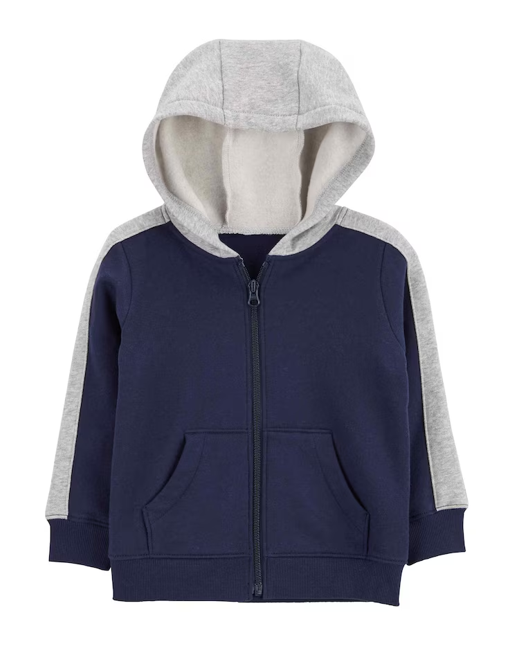 Perfeita para aquecer os pequenos, o Blusão de moletom infantil aberto com capuz azul | Carter’s é neutro e pode ser combinado com diversos looks e seu tecido traz o conforto e o aconchego necessários. Combine com uma calça de moletom do mesmo tom e forme um conjuntinho. Invista!