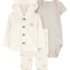 Pensado especialmente para dias mais gelados, o Conjunto longo bebê 3 peças cachorrinho multicor | Carter’s é a pedida ideal para deixar seu bebê bem aquecido. O conjunto conta com 1 body com estampa de cachorrinhos, 1 calça com cós elástico e estampa de ursinho, 1 jaqueta com mangas longas, abertura frontal por zíper e capuz com orelhinhas. Super aconchegante e quentinho, o conjunto vai proteger o seu bebê e ele ainda vai ficar uma gracinha!