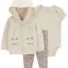 Pensado especialmente para dias mais gelados, o Conjunto longo de moletom bebê 3 peças bichinho rosa | Carter’s é a pedida ideal para deixar seu baby bem aquecido. O conjunto conta com blusa e calça de moletom com tema de bichinho, além de fechar com um body tradicional. Aproveite!