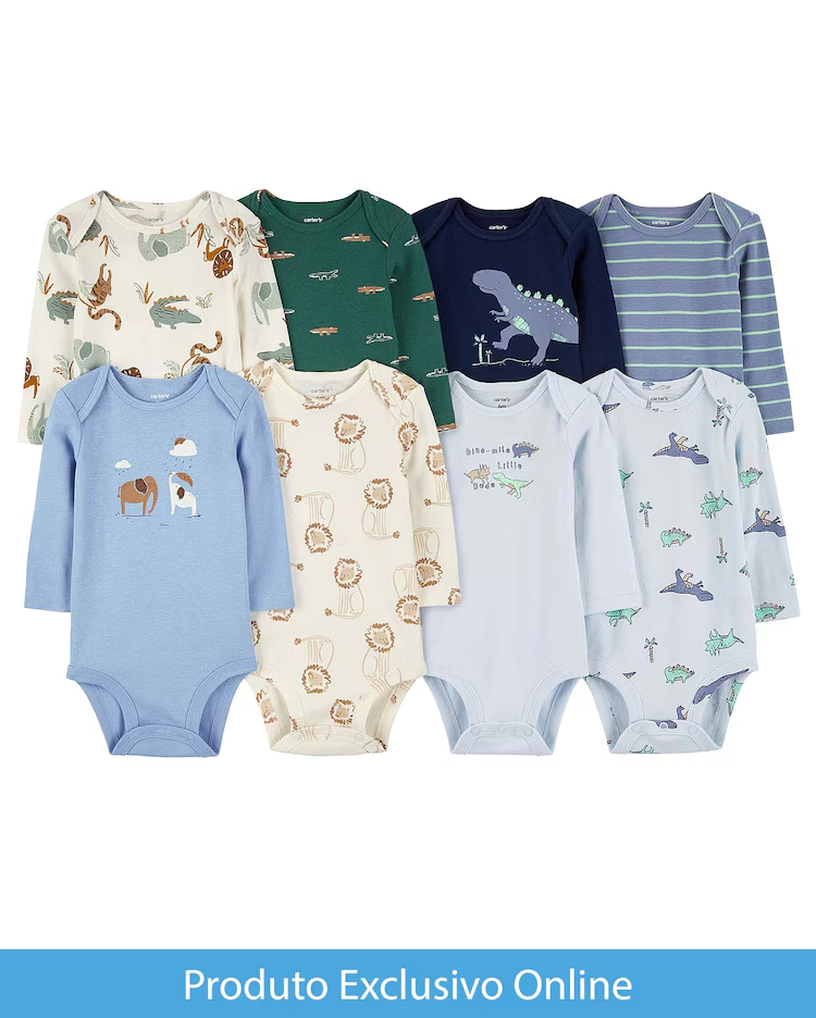 O Enxoval bebê 8 peças manga longa listrado elefantes multicor | Carter’s será a pedida certa para aliar conforto e economia para o seu bebê. Produzido em algodão, o enxoval vem com oito bodies de manga longa, ombros traspassados e variam entre estampas diversas, mas também em versões lisas. Aproveite!