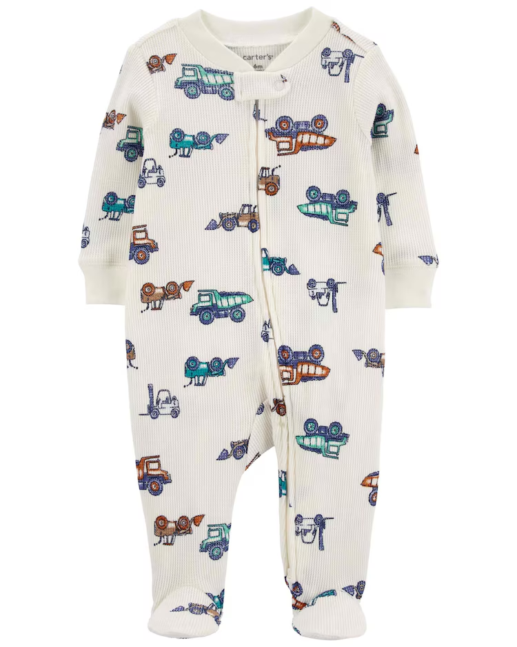 Alie conforto e fofura ao seu baby com o Macacão bebê texturizado caminhões brancos | Carter’s. Feito de algodão e poliéster, o macacão conta com fechamento por zíper inverso com martingale para proteger os dedinhos de seu bebê, manga em ribana e seu charminho fica por conta da estampa de caminhões e tratores. Uma graça!