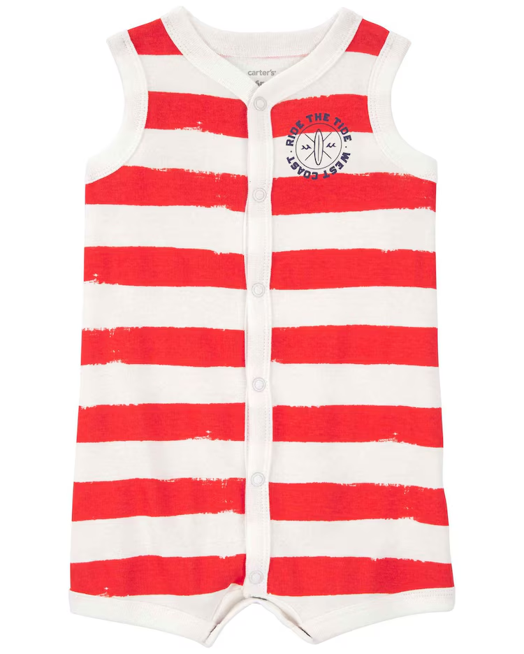 Perfeito para dias mais amenos e ideal para nós que amamos deixar nossos filhos ainda mais fofinhos, o Macaquinho bebê com listras multicor | Carter’s surge na medida certa para seu baby. Feito de algodão, o macaquinho possui abotoamento entrepernas, modelo regata e conta com a estampa listrada. Ele ficará ainda mais lindinho. Aproveite!