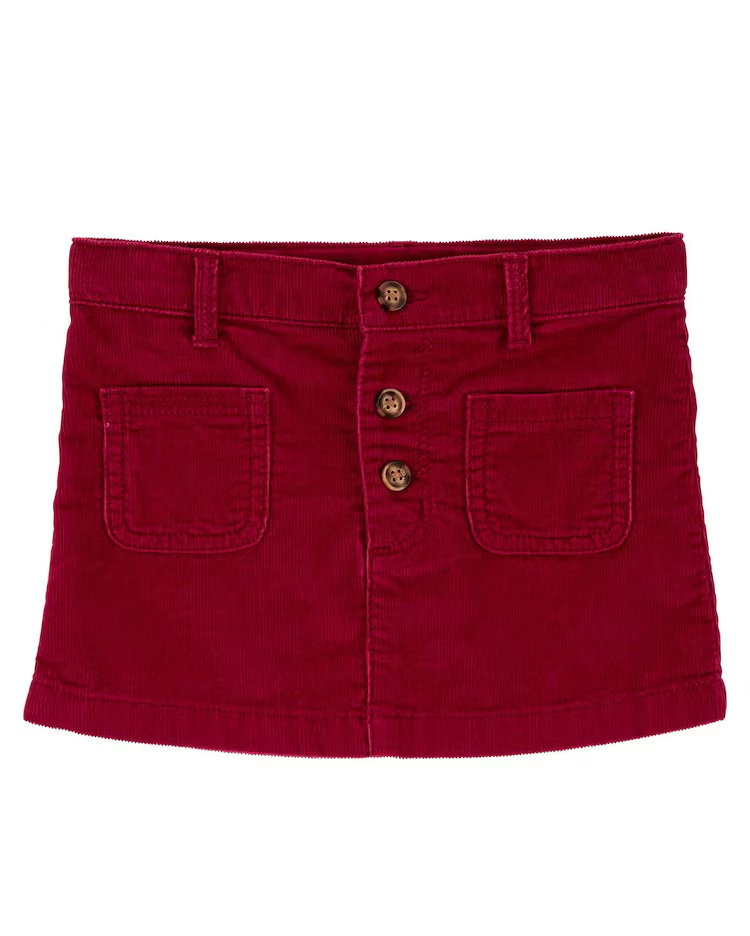 Feminina e versátil, a Saia infantil de veludo cotelê vinho | Carter’s é ideal para manter sua pequena confortável e estilosa, seus lookinhos podem variar, seja utilizando a peça com uma meia calça para dias frios ou apenas a saia com um outfit para temperaturas mais amenas. Confeccionada em veludo cotelê, estampa de melancia, cós com passantes e abotoamento frontal.